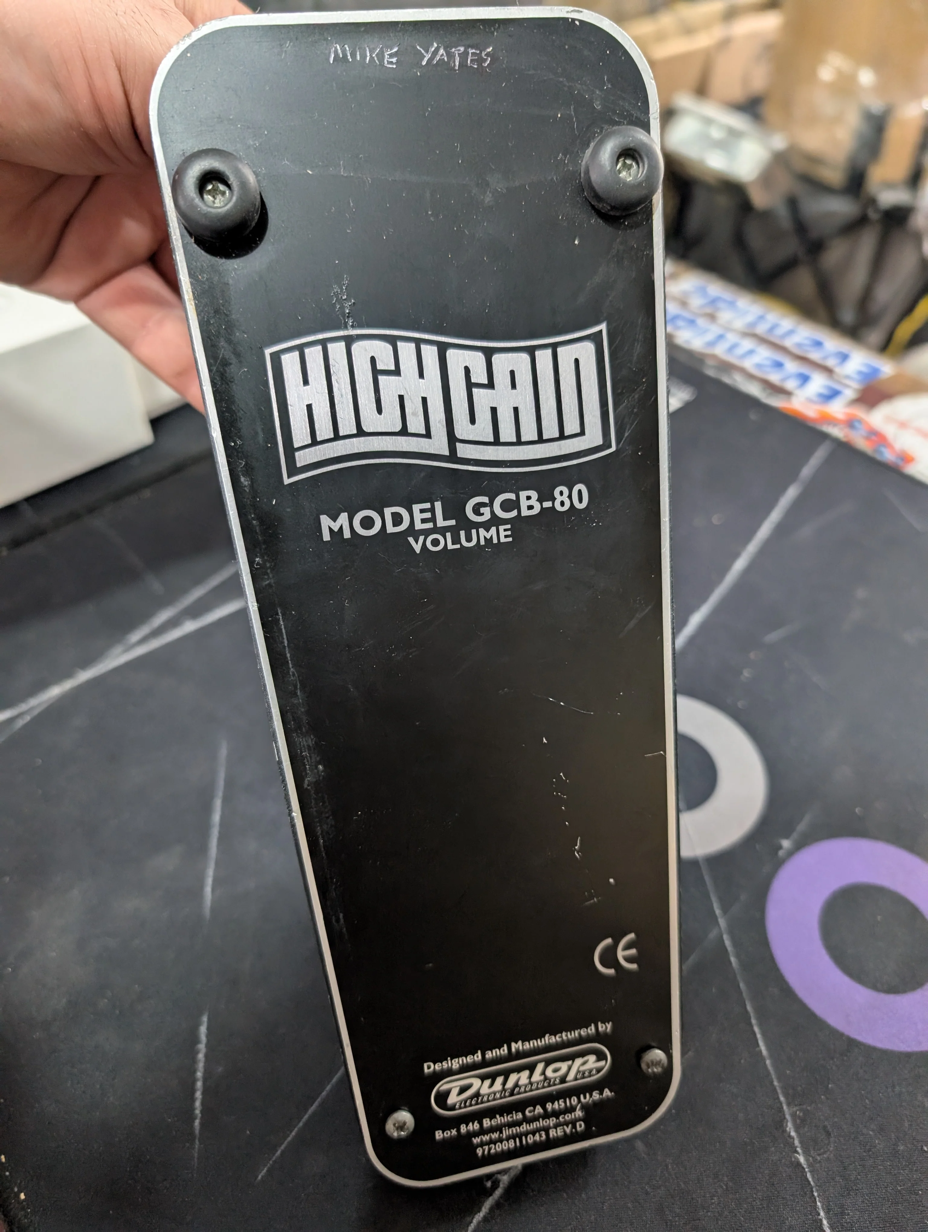 Rugged high-gain volume pedal with a smooth, even sweep and a heavy-duty die-cast chassis. Handles high-output guitars and basses cleanly while delivering precise, reliable volume control. Missing two feet. *Pot slightly scratchy, high whistling when running off mains - Not there when running on battery.