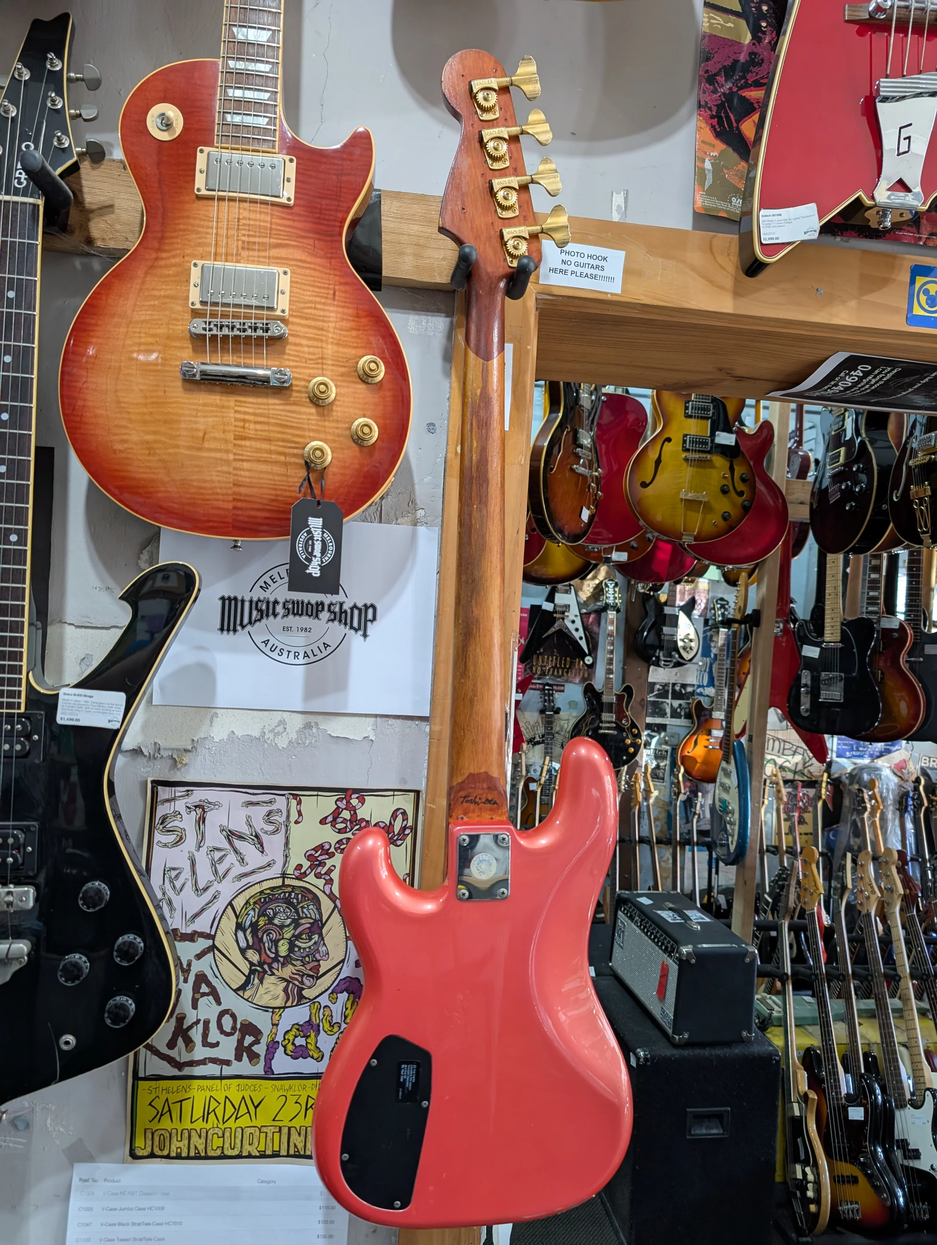 Made in Japan 1991 - 92. Fretless neck with we don’t think is original for the body. The neck looks to have been painted or sprayed at some point. Replacement Grover tuners. The back of neck seems to have been varnished or sprayed (poorly). 32 inch medium scale version.