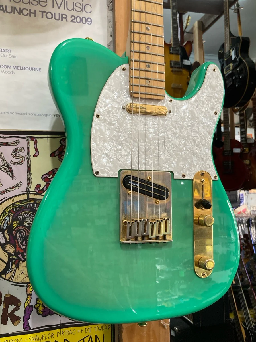Seafoam Green Sunburst finish. One piece Maple neck. Ash body with Flame Maple Laminated Top.